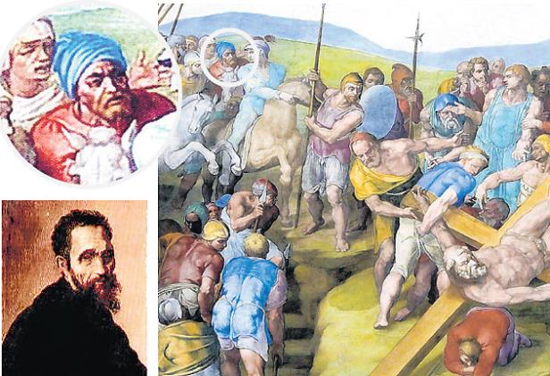 Trên góc trái bức The Crucifixion of St Peter gương mặt của Michelangelo